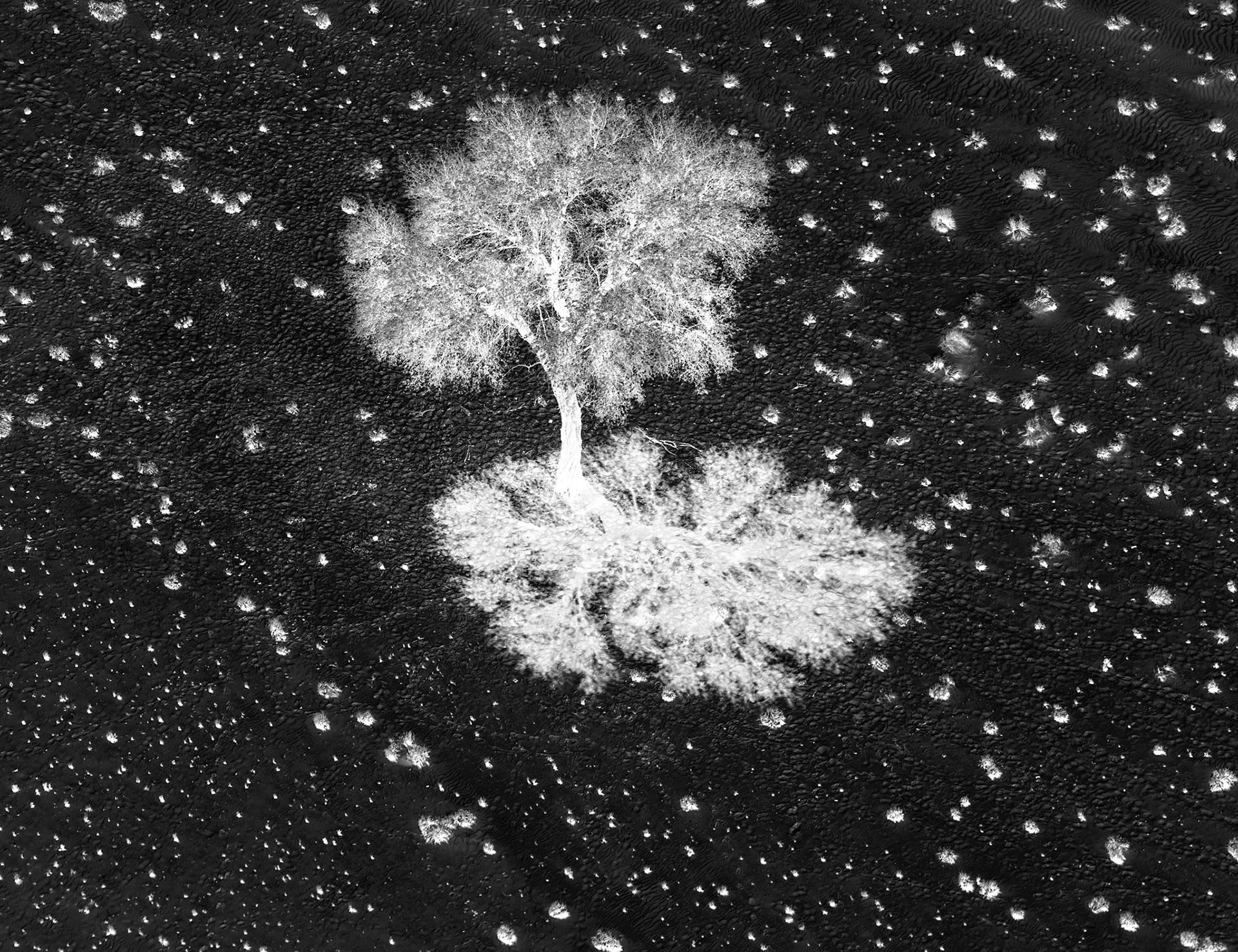 found that the near-circular shape of the shadow interested me more than the tree itself. This feeling was enhanced when I made it a negative image photo.